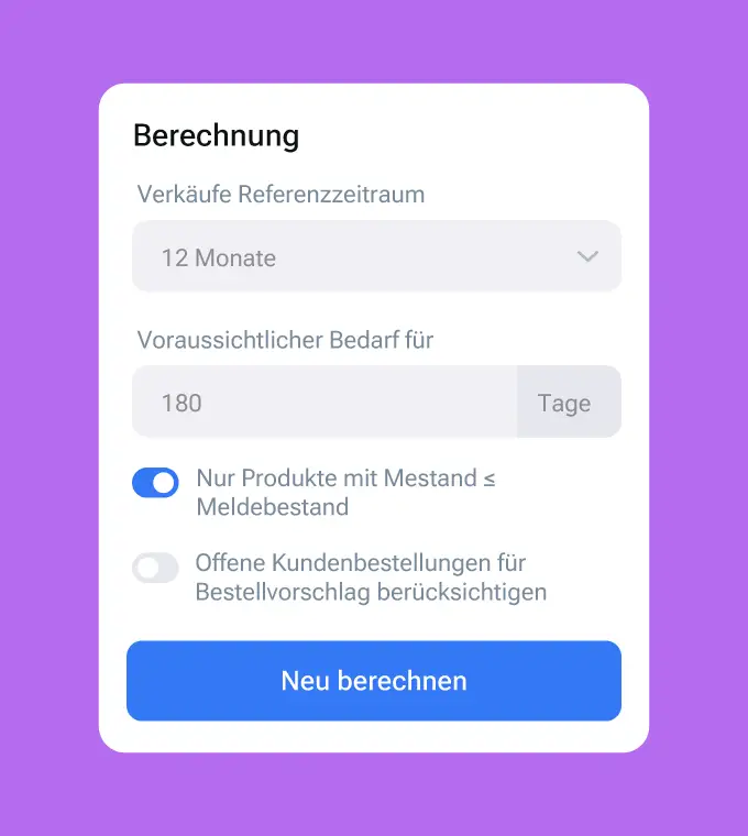 Vermeide Out-of-Stock Situationen mit der Bedarfsplanung und dem automatisierten Einkauf. So hast du deine Bestände immer unter voller Kontrolle.